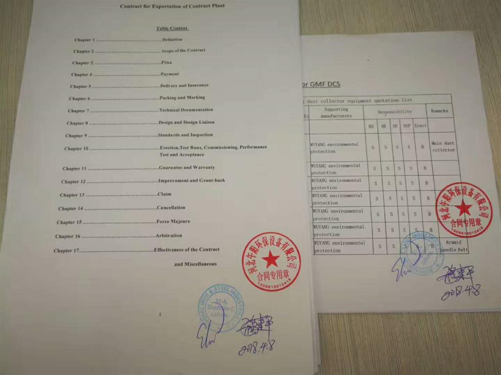 午阳环保跟迪拜钢厂签订除尘器维修改造合同