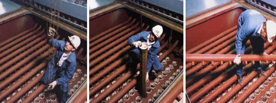 五、日常巡回检查或运转中,临时处理故障时,作业人员必bi须严防衣物绞入传动装置中。进入集灰斗清灰或进入滤袋室挂袋时,必bi须穿戴劳动保护用具,防止粉尘迷眼或灼伤皮肤。